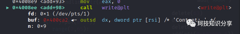 count被破坏,最后再add一个带shellcode的,这里先用NOP代替,执行到最后一个show断点,先b add再c。然后慢慢单步n。