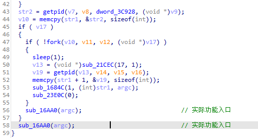 3.创建子进程,通过prctl(PR_SET_NAME) 函数调用,设置随机化进程名称,例如“\[[az]{12,17}\]”(正则表达式)。