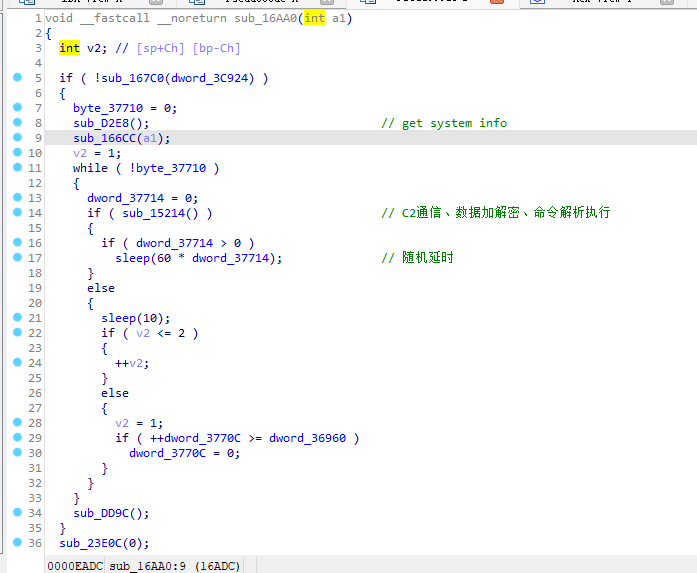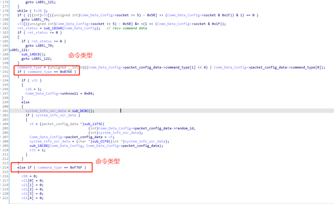 7.等待C2服务器命令,按照命令类型分发。具体的功能和国外avast安全厂商所分析一致。