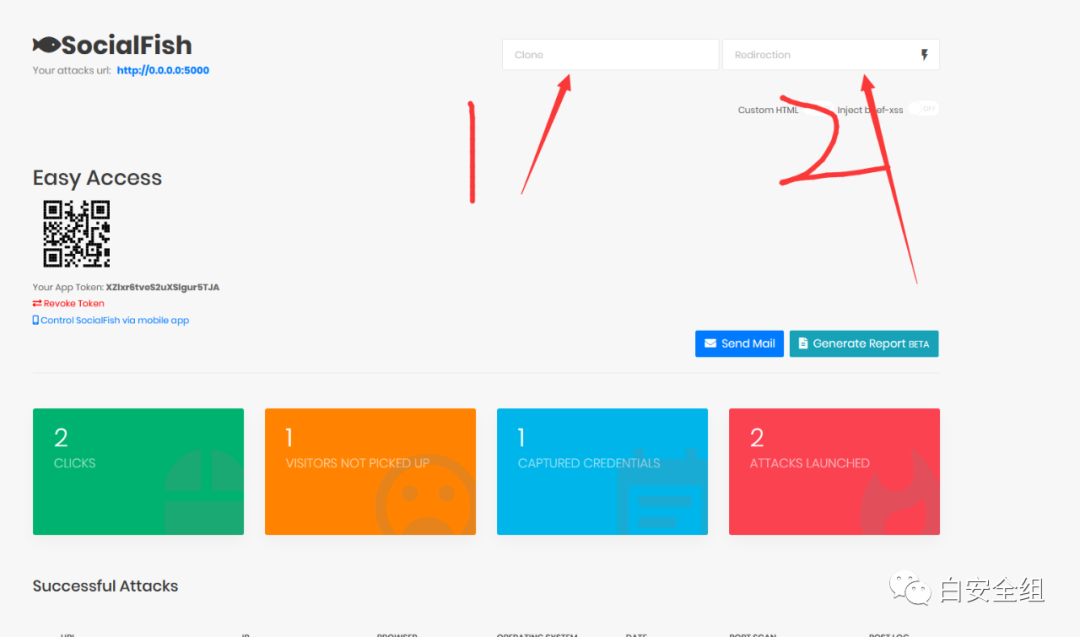 这里1是输入你要克隆的站点,2的位置是克隆站点跳转后的网址,这里自行选择之后,我们点击那个雷电的符号,例如我这里设置
