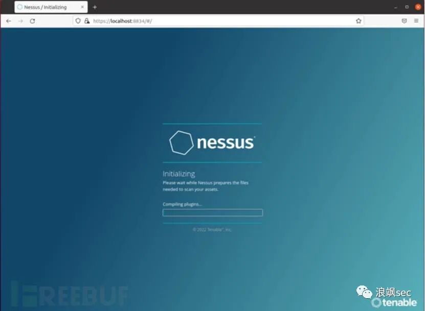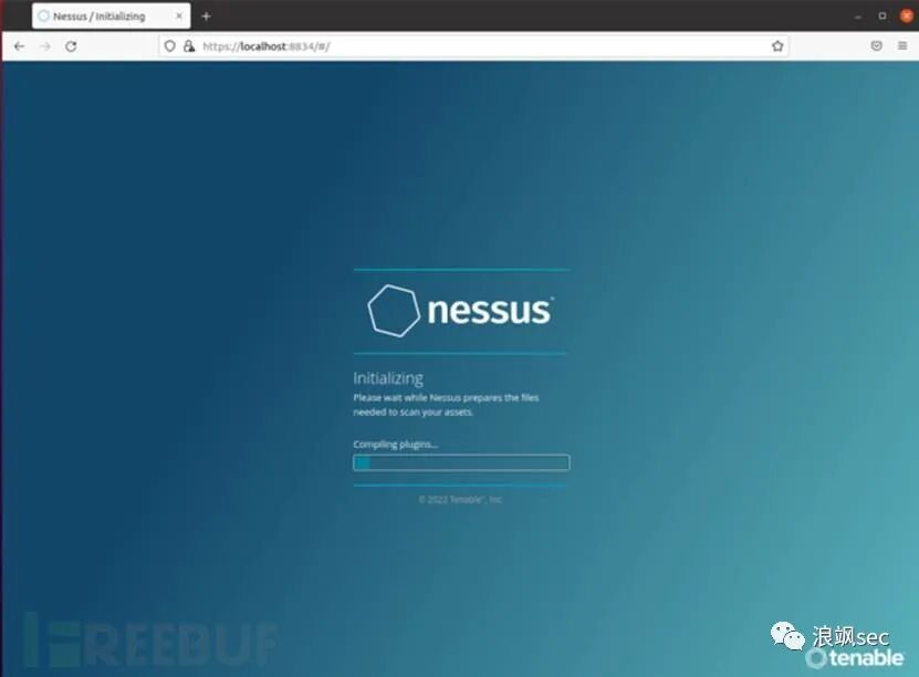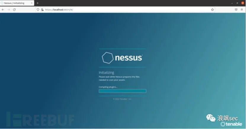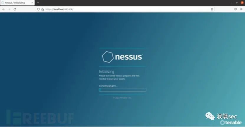 访问https://localhost:8834/,会再次出现初始化的页面,这是Nessus在编译和安装插件,过程中可能出现进度到90%之后又变为20%左右,属于正常现象;该过程耗时几十分钟到几小时不等