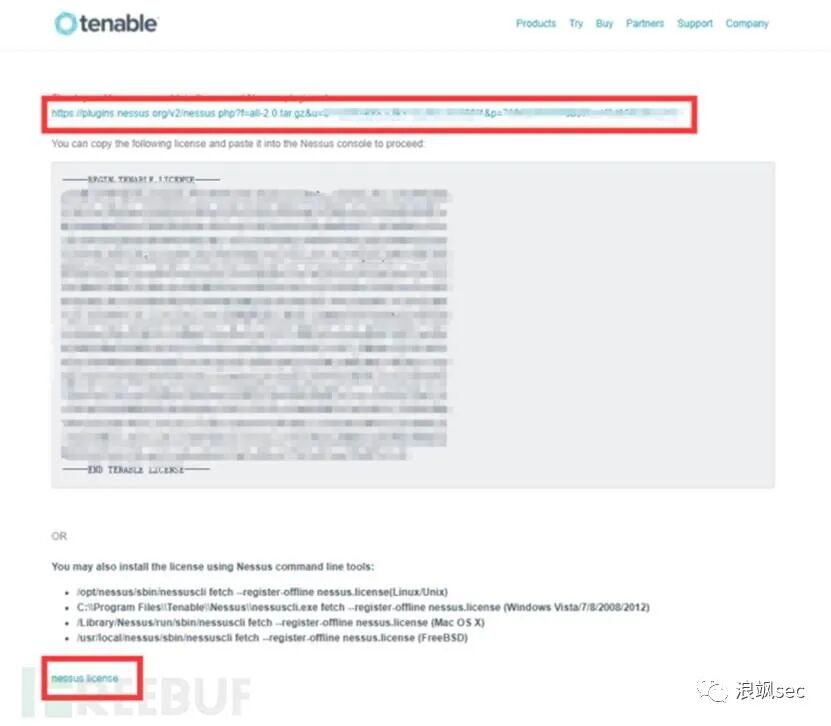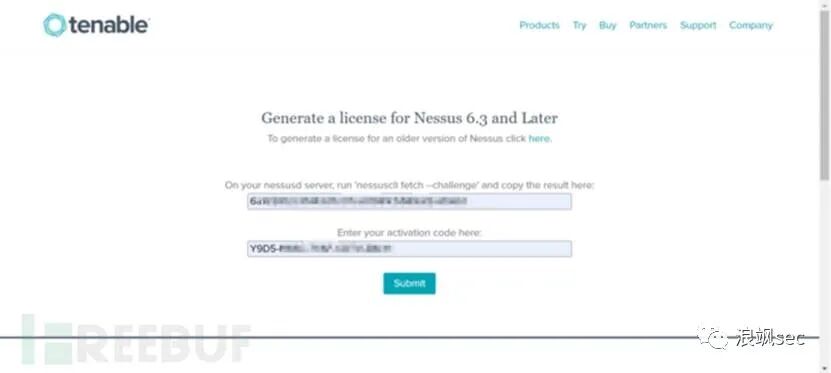 访问网站https://plugins.nessus.org/v2/offline.php,在其中输入刚才获得的挑战码和激活码,点击subimt,获取license和插件包