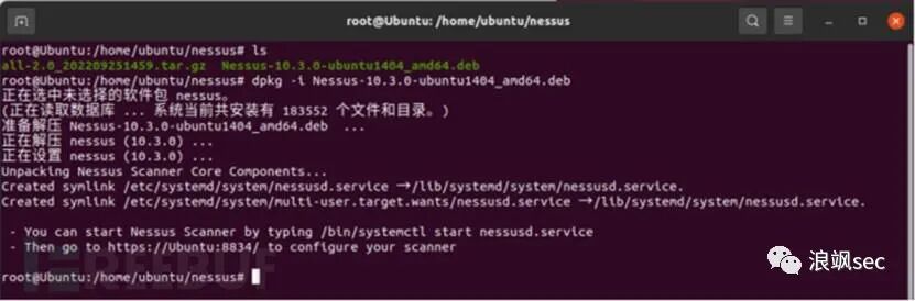 首先切换到root用户,然后执行dpkg -i Nessus-10.3.0-ubuntu1404_amd64.deb