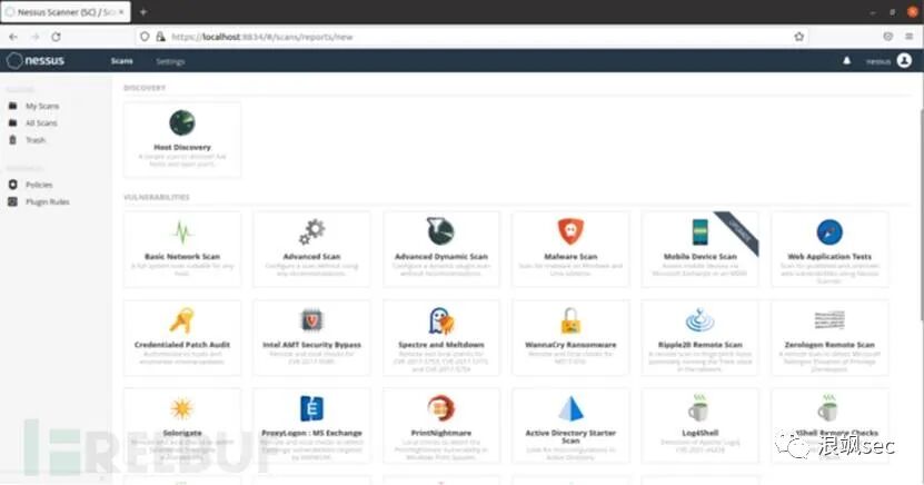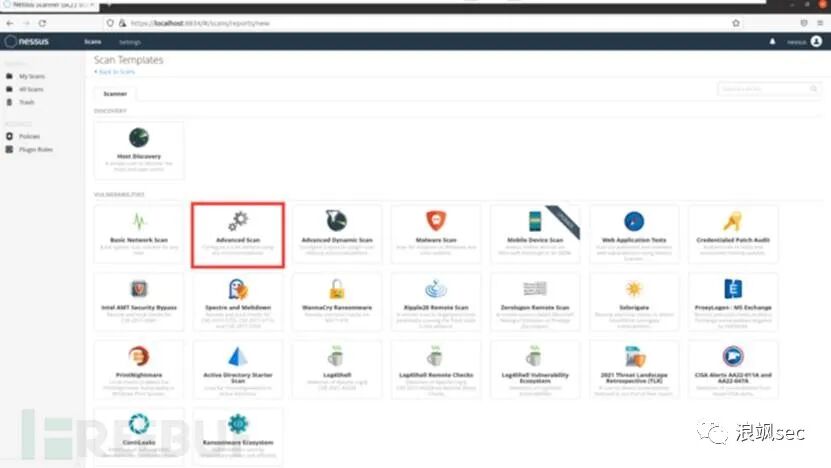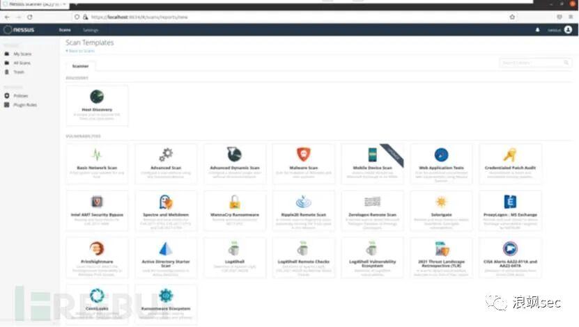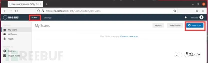 点击Scans,点击右上角蓝色的New Scan,查看可以使用的功能