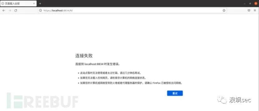 刚启动后,可能会出现连接失败或 Feed Error 页面,多刷新几次即可。