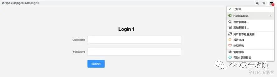 接下来我们来这么一个简单的网站:https://scrape.cuiqingcai.com/login1,这个网站结构非常简单,就是一个用户名密码登录,但是不同的是,点击 Submit 的时候,表单提交 POST 的内容并不是单纯的用户名和密码,而是一个加密后的 Token。