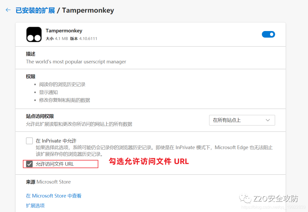 按照上述步骤打开 Tampermonkey 插件的详细信息