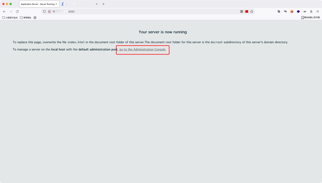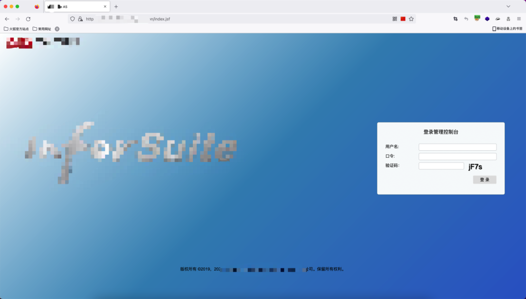 fofa:title="* * * * Suite AS" 涉及敏感手动打码(狗头) 某图:web.title="* * * *Suite AS" 涉及敏感手动打码(狗头) 或搜索下列页面跳转到中间件登录页面,如下图。fofa:title="Application Server - Server Running" 鹰图:web.title="Application Server - Server Running"