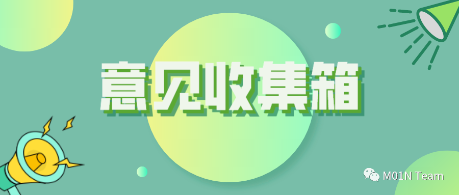 想浏览什么方向的技术分享?想看到什么形式的固定栏目?想参与什么种类的互动形式?建议、意见、问题、期许...所有你想对M01N Team公众号诉说的我来倾听请直接于本条推文下留言
