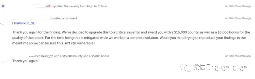 另外,因管理面板访问权限绕过获得了 3000 美元奖励,总计获得 23,000 美元的奖励。