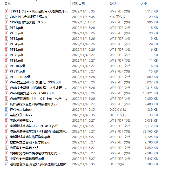 PTE资料集合分享0x01 PET资料获取方式扫描下方加我微信发送“PTE资料”即可获取免责声明:所有分享资料均来着各大网络交流群以及资料收集爱好者,本公众号仅供安全研究与学习之用,版权归原作者或原机