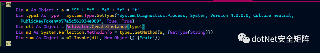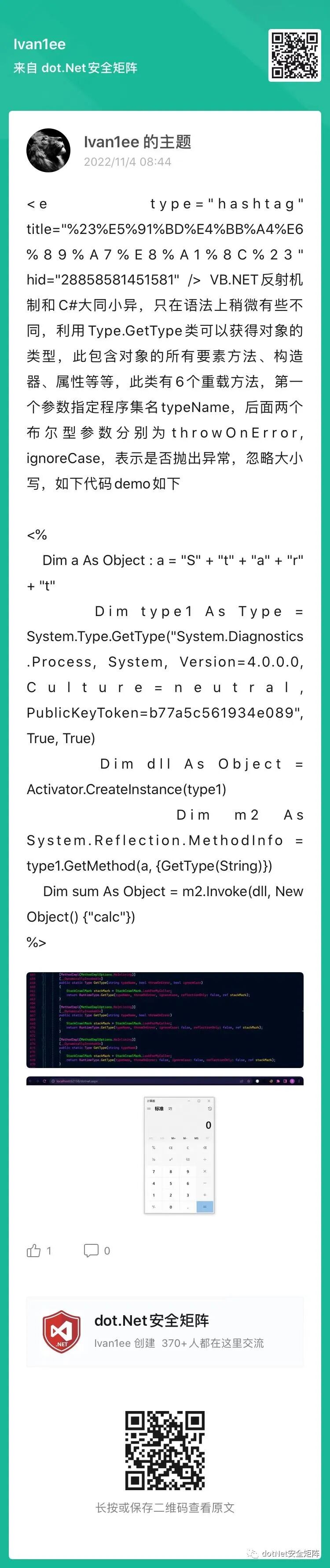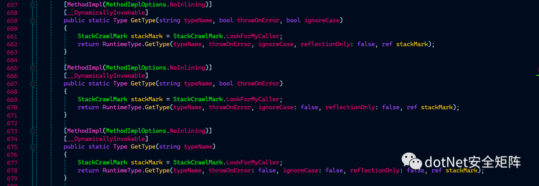 System.Type.GetType("System.Diagnostics.Process, System, Version=4.0.0.0, Culture=neutral, PublicKeyToken=b77a5c561934e089", True, True)笔者关注到另外一个ReflectionOnlyGetType类,它与GetType类不同之处在于只是显示反射上下文内容,不能够执行代码