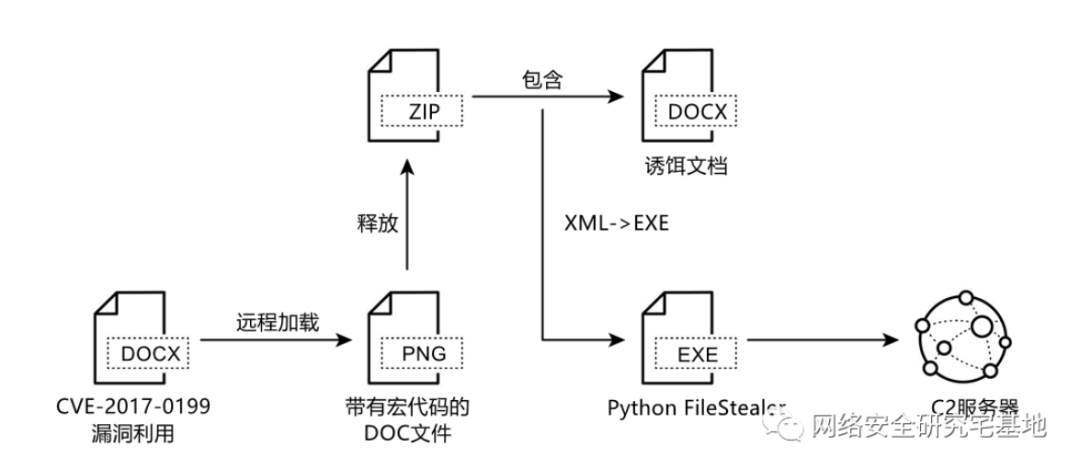 第一阶段通过CVE-2017-0199漏洞文档远程加载包含宏代码的flyer.png文件,宏代码会打开flyer[1].png读取数据写入ZIP。随后将ZIP文件中的document01.docx解压,释放theme01.xml到本地\System32\spool\drivers\color路径下重命名为sppsvc.exe,该文件为PyInstall打包的窃密软件,会窃取多种后缀文件。通过创建计划任务实现sppsvc.exe的持久化操作,最后打开document01.docx诱饵文件迷惑用户,诱饵文档内容为CSD摩托车品牌价格清单。
