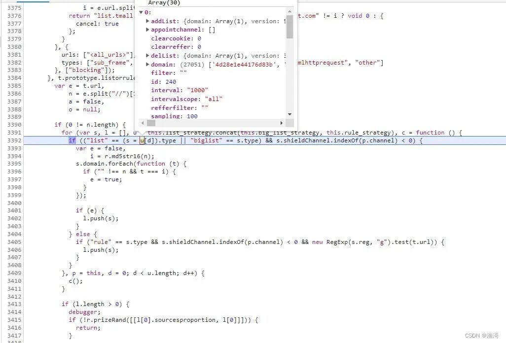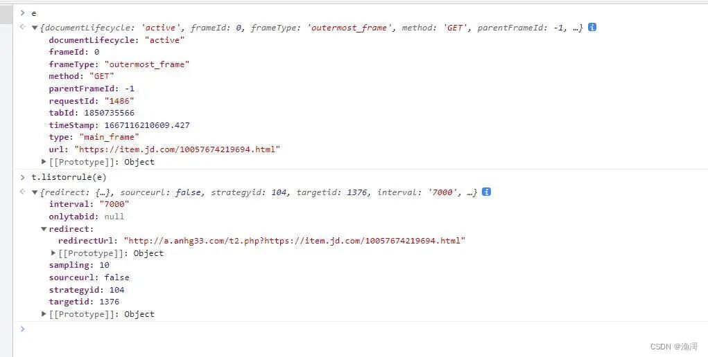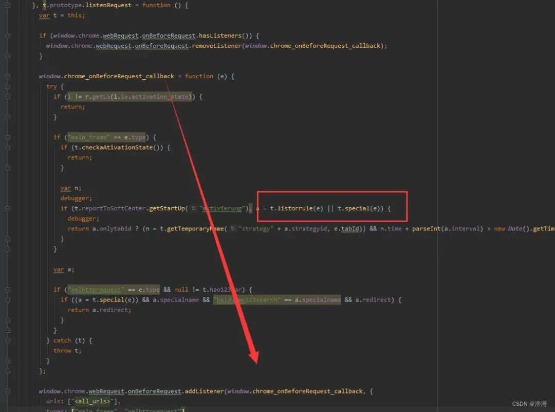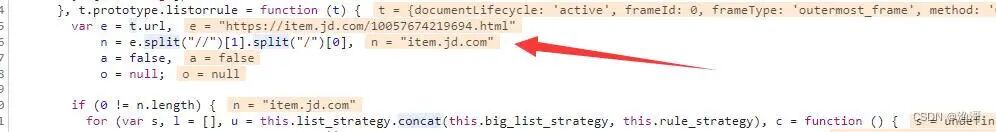 这种是比较常规的添加了请求前的时间监听,可以通过自定义的逻辑,将原本的请求链接变成其他的链接。这里的【t.listorrule(e) || t.special(e)】是两个重要的判断逻辑,如果符合其中一个,就会修改链接,这里先看listorrule的逻辑,经过测试,发现京东的链接是符合逻辑的,所以这里直接用作示例