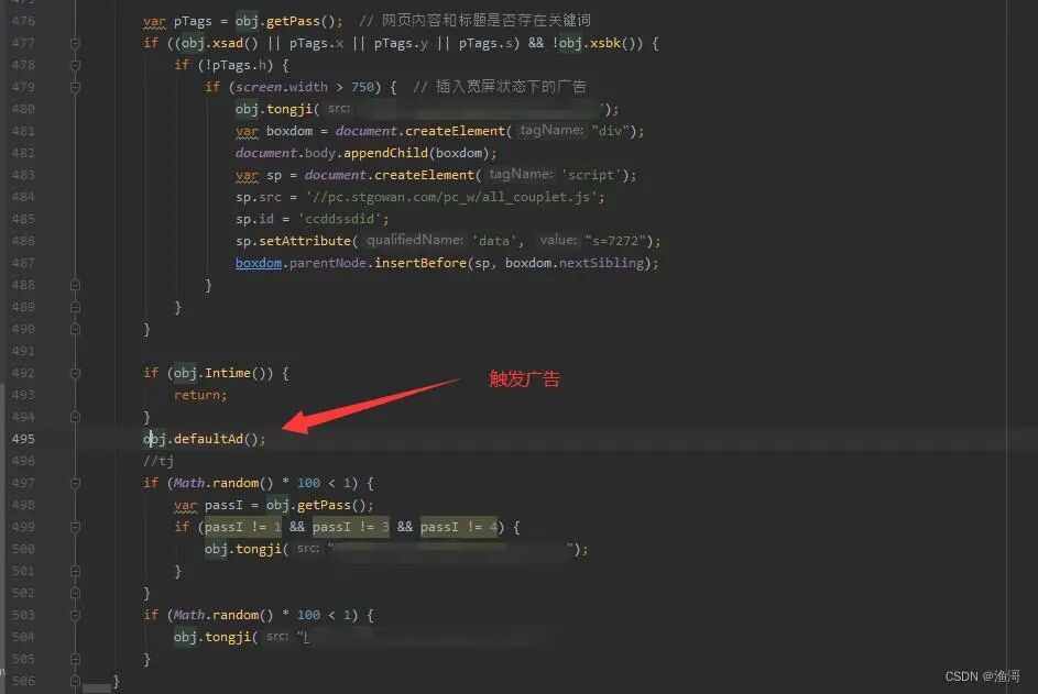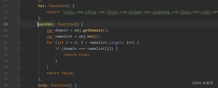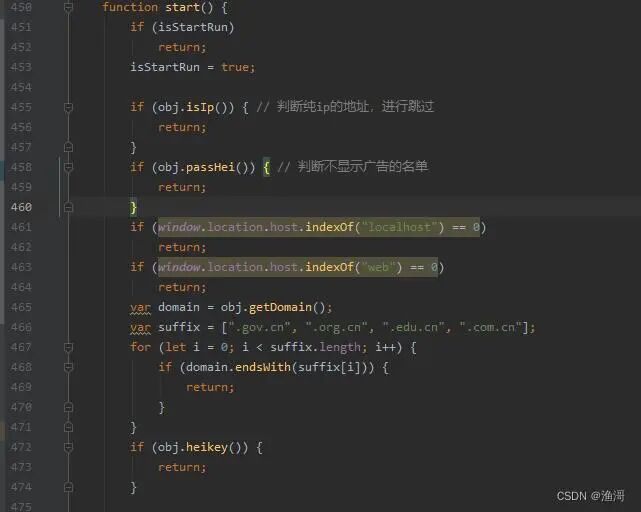 然后是判断了passHei函数,跳过了一些固定不显示广告的网站,接着跳过包含【'localhost','web','.gov.cn','.org.cn','.edu.cn','.com.cn'】等的地址