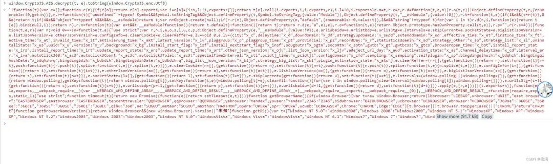 解密的结果就是一段js,然后eval执行。这就达到了在线注入js了,然后注入广告的代码,很有可能也是在这段js里面。
