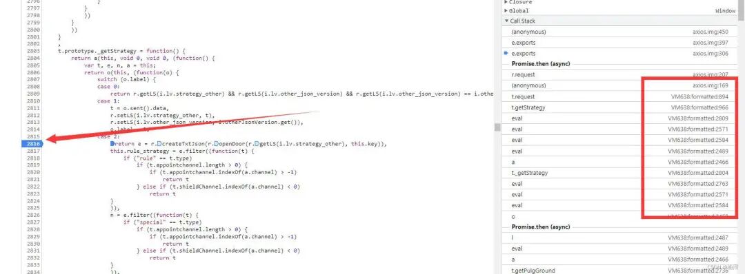 这里可以看到调用堆栈都是vm,也和前面获取在线js然后eval运行对上了,这里可以看到是调用了createTxtJson方法来解析这些敏感信息