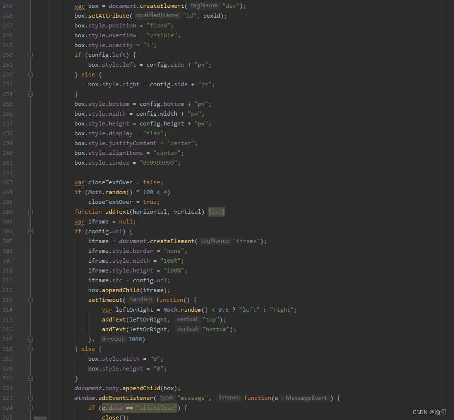 接着Intime函数大概就是判断不要太短时间重复触发,defaultAd函数就是生成广告的主体了,下面还有两个是只有1%概率发生的广告,是直接插入一个页面,再看看defaultAd函数