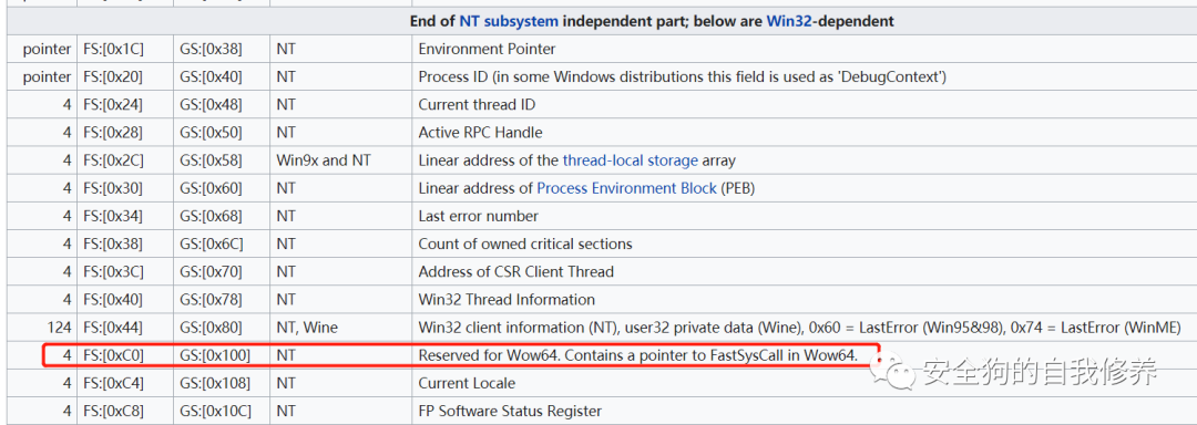 导出函数Wow64Transition指向wow64cpu!KiFastSystemCall,该函数实现从x86到x64模式的转换(https://bbs.pediy.com/thread-189808.htm)。
