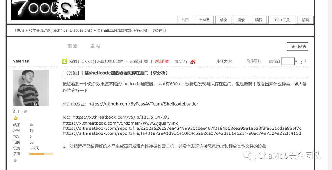 T00s帖子某shellcode加载器疑似存在后门【求分析】