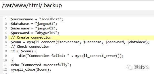 继续找别的敏感信息,随后再整站目录下发现另外一个数据库连接账号密码的备份文件。