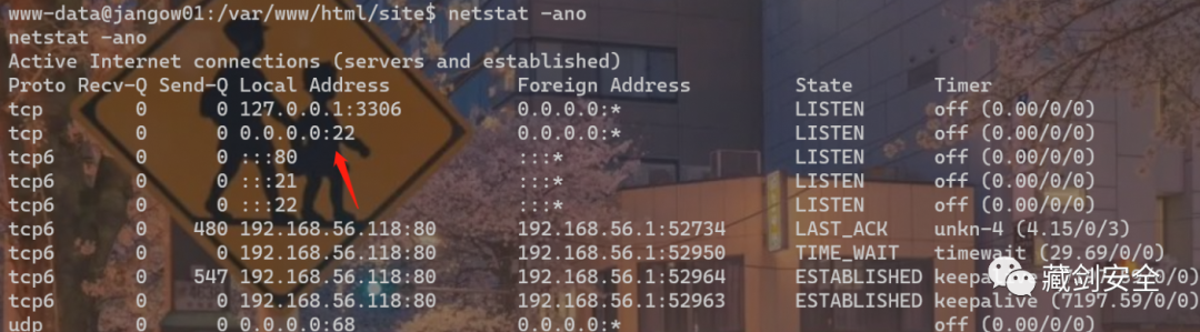 然后就可以尝试各种命令了,再查看端口的时候,发现开放了22SSH端口: