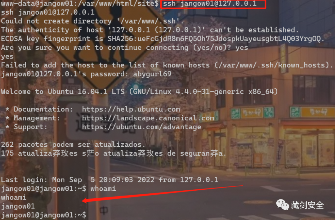 尝试SSH登陆,使用刚刚的FTP账号密码进行尝试。吼,登陆成功