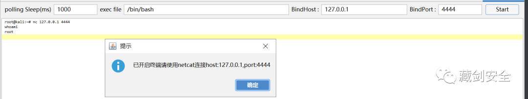 哥斯拉的中有不出网反弹shell的模块:RealCmd,填好参数后,尝试进行shell反弹