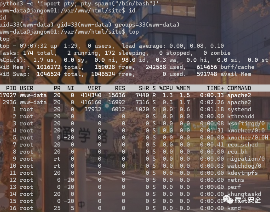 本地nc监听4444即可:反弹成功,但是此时反弹回来的shell很多命令都没办法使用,比如top,vim,sudo等