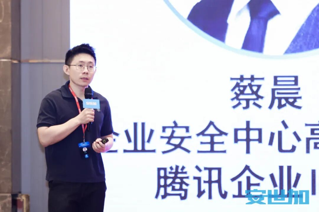第四位演讲嘉宾是来自 腾讯企业IT部的企业安全中心高级总监 蔡晨,他的演讲主题是《建立可持续发展的企业安全建设思维》。