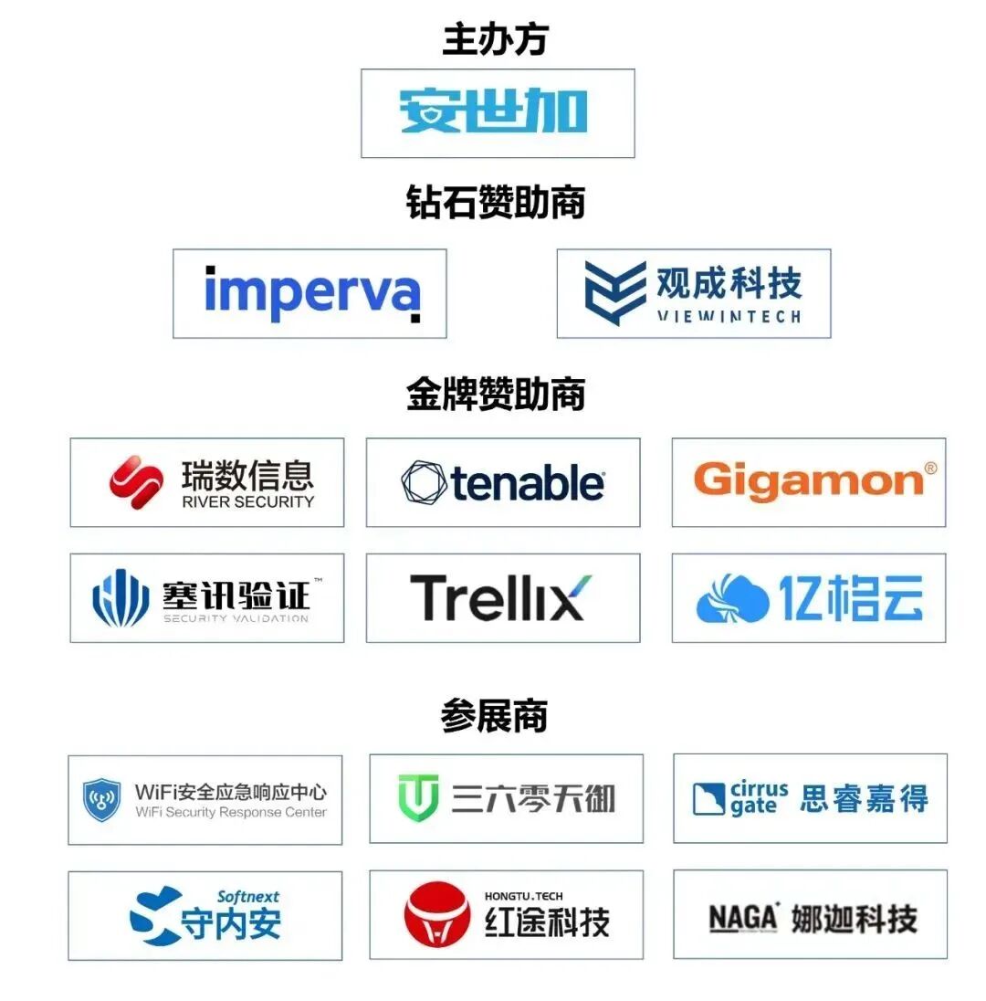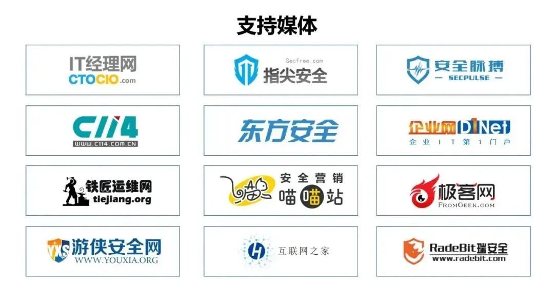 本次峰会的赞助商是Imperva、观成科技、瑞数信息、Tenable、Gigamon、塞讯验证、Trellix、亿格云、Wifi安全应急响应中心、三六零天御、思睿嘉得、守内安、红途科技、娜迦科技,并获得多达31家单位和23家安全媒体的鼎力支持。