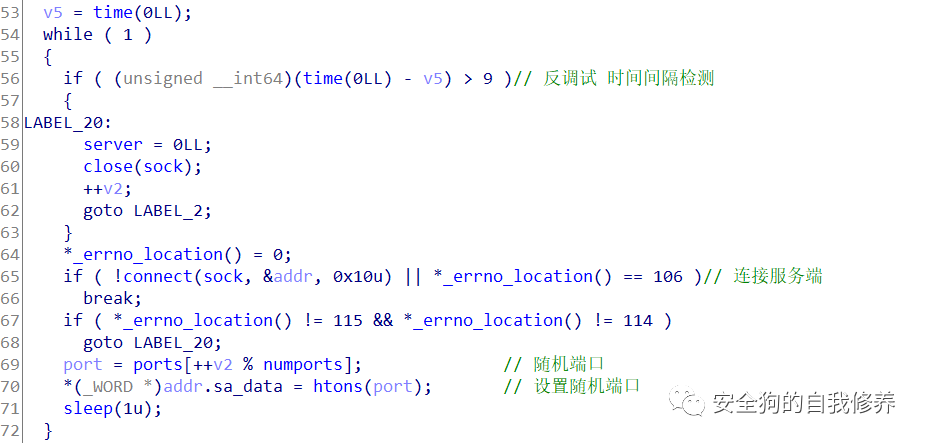 样本作为“僵尸网络”中的“肉鸡”,执行逻辑如下。
