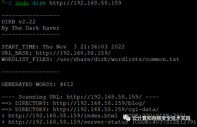 有web服务,继续做目录爆破,sudo dirb http://192.168.58.159,