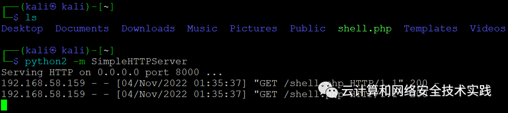 kali攻击机上开个web文件下载,python2 -m SimpleHTTPServer,