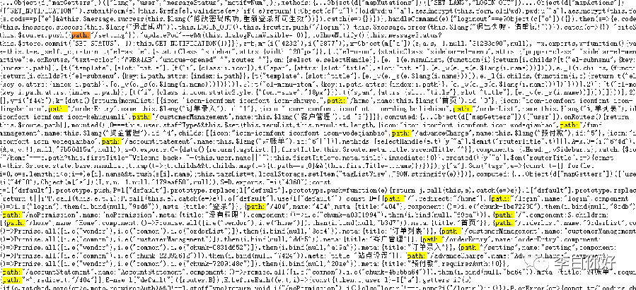 实战中会经常遇到很多js文件,在js文件中很可能会遇到一些敏感信息和路径之类的,遇到路径可以尝试拼接,有可能会遇到未授权的情况等等,也有很多站点是webpack打包,可以F12查看sources找到路由可以看到所有路径
