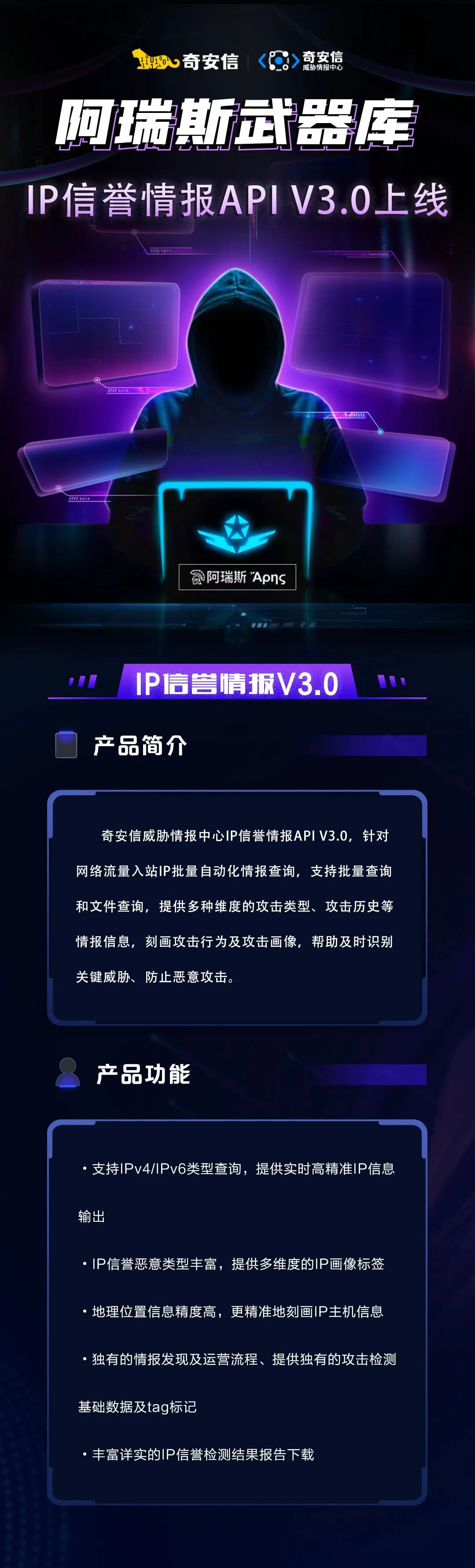 奇安信威胁情报中心提供IP信誉情报API V3.0接口采购服务,如有任何商务合作请联系:[email protected]