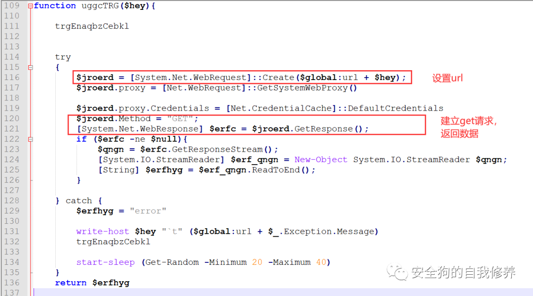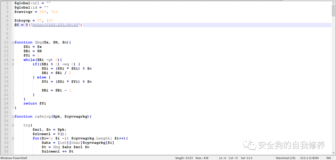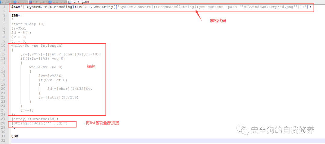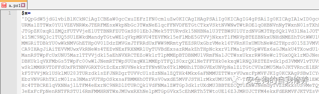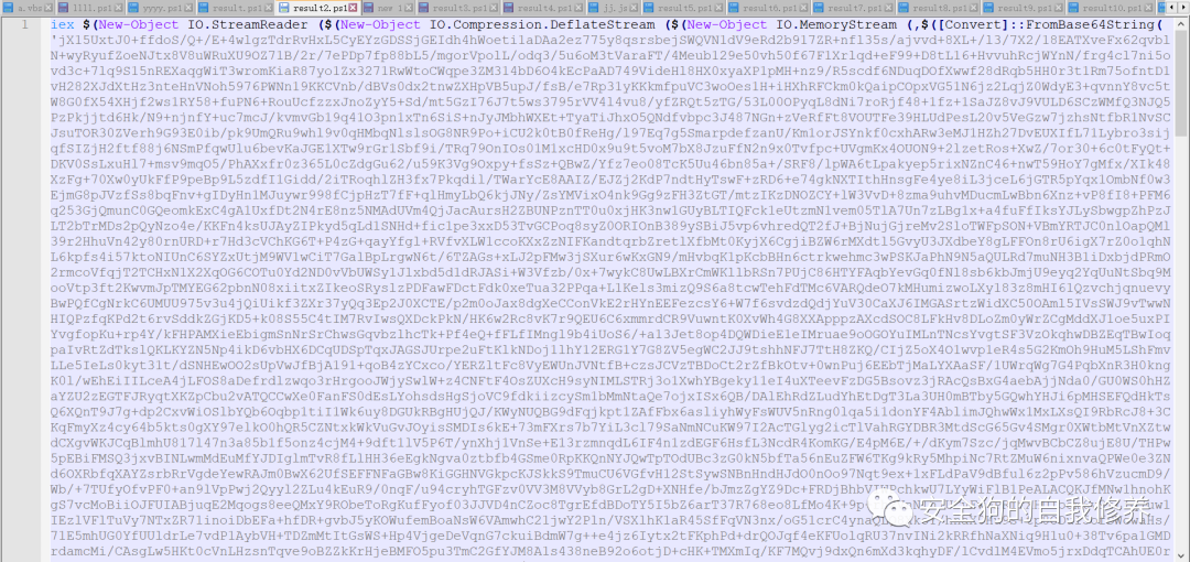 解密得到被混淆的ps1脚本,该脚本分析见下节。3.5 反混淆powershell脚本混淆脚本见下图:![]()
