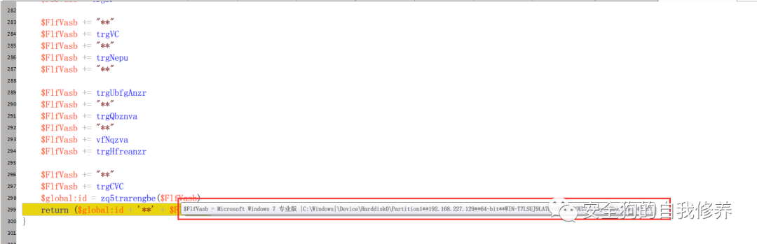 获取设备信息操作如下:(1)收集当前环境信息:Windows版本;内网IP地址;系统位数;计算机名称;用户组;公网地址。(2)计算hash得到一个设备识别id。![]()