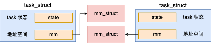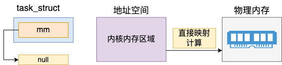 另外要注意的是,mm(mm_struct)表示的是虚拟地址空间。而对于内核线程来说,是没有用户态的虚拟地址空间的。所以内核线程的 mm 的值是 null。