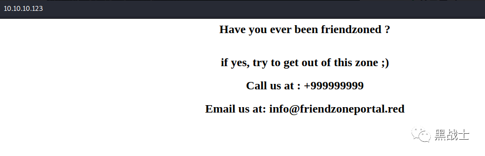 nmap -sC -sV -p- -A 10.10.10.123 -T4 -oA nmap_friendzone访问80端口的http服务只发现了一个域名。