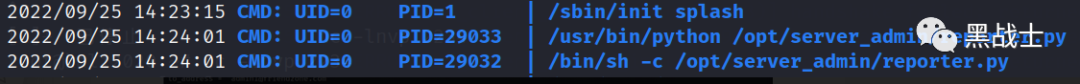 那我们接下来就传pspy64到该机器上来,然后看看有没有以root用户定期执行的py脚本调用了os库,如果有的话,我们在OS库中写入反弹shell的代码,这样当该脚本被执行时,我们就会获得一个root权限的shell。