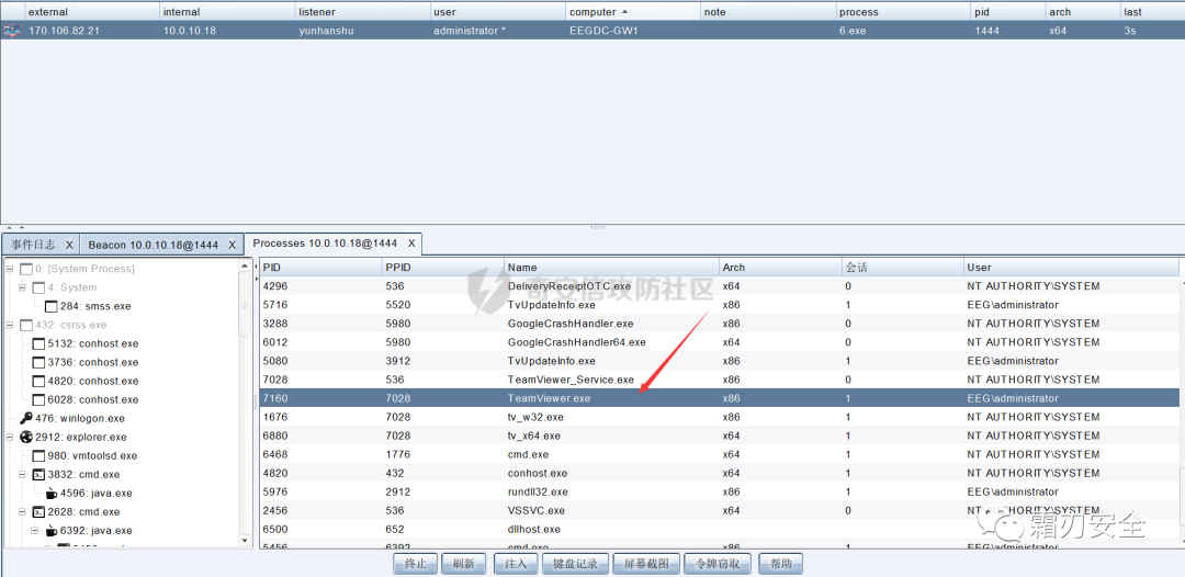 不存在杀软,那么Beacon就不需要免杀处理,我们可以直接上线CS(这里上线的Beacon配置了云函数,所以外网ip是一直变的)