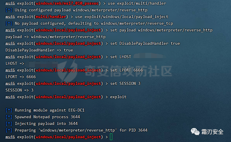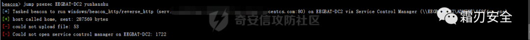 初步探测两个域控均存在MS17010,这里使用Landon自带的exp,发现利用失败。既然这样,那么上线MSF吧