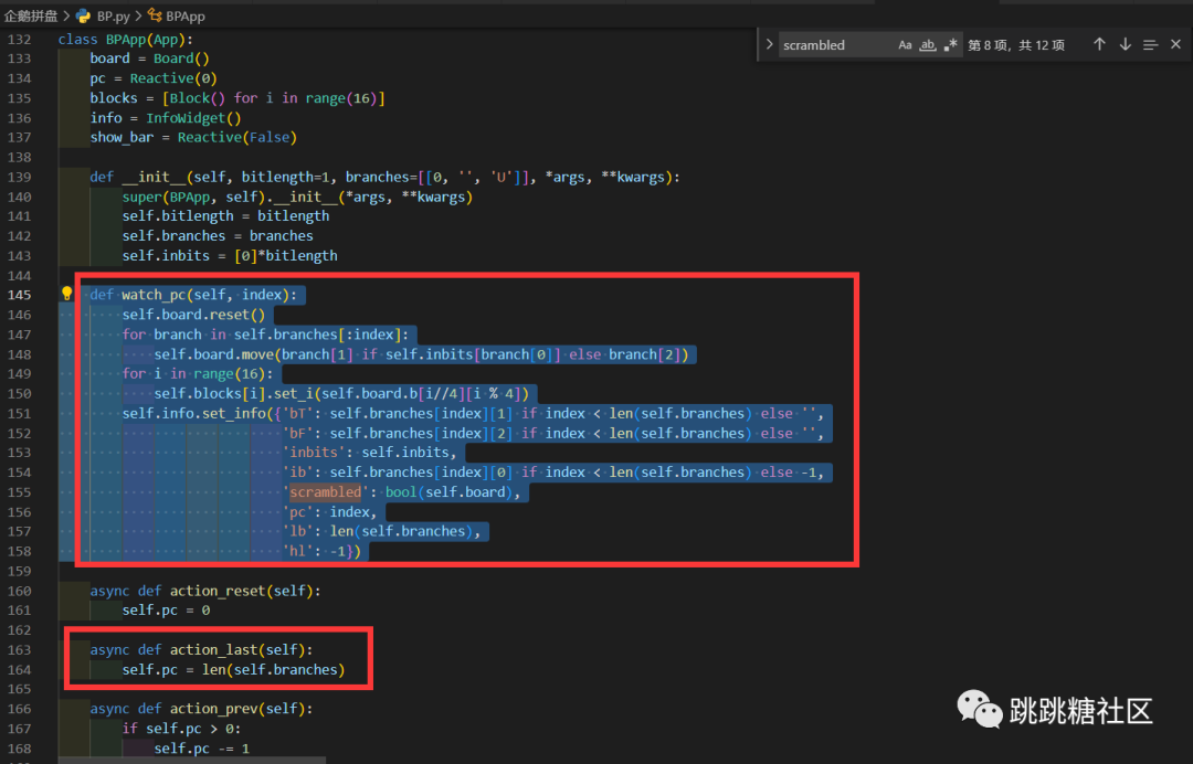 所以事实上只需要调用 self.board.move,把 branches 全部给操作完,再看拼图有没有乱,也就是 bool(self.board) 是否为真就完事了