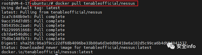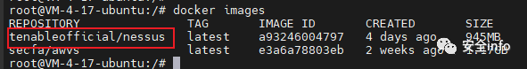 docker pull tenableofficial/nessus3.通过docker images查看下载的镜像