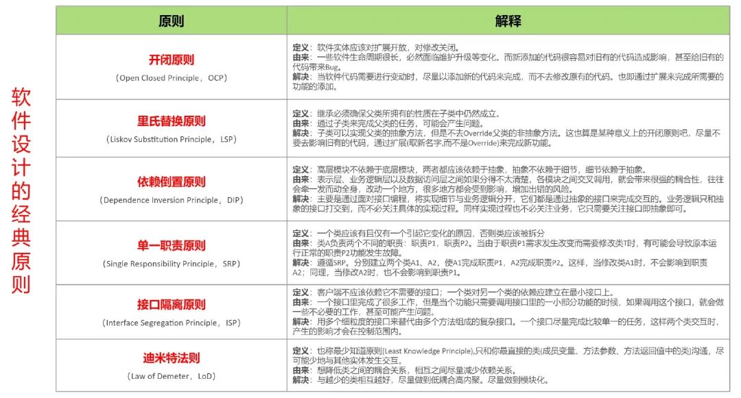 软件设计原则,说到底不外乎,模块内高内聚,模块间去耦合。下面是学院派总结的一些原则,可以对照来看。