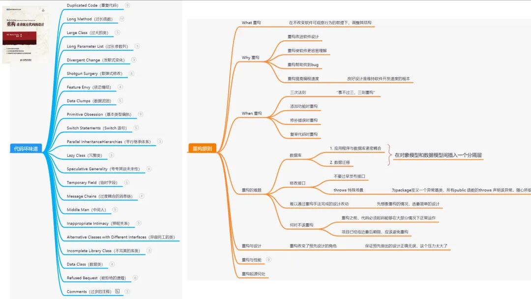 从这本书开始,”代码坏味道”成为开发领域的一个标准术语。在重构的过程中,有一些基于经验的原则可供参考。