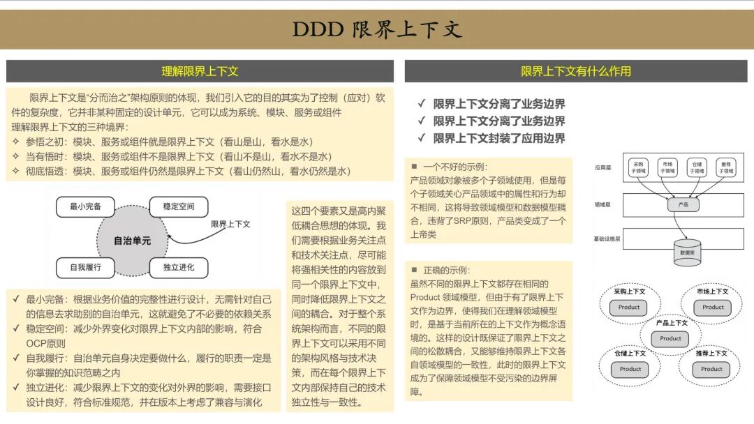 通过限界上下文将一个大系统切分为若干高内聚低耦合的子领域