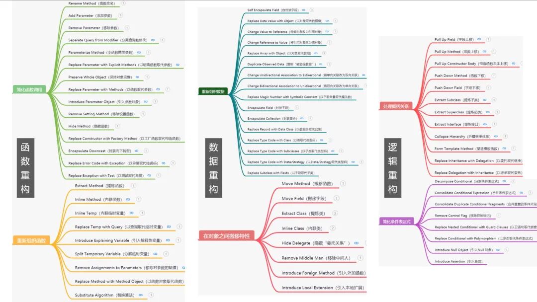 《重构:改善既有代码的设计》,这本书的主要内容,用一个脑图展示如下。
